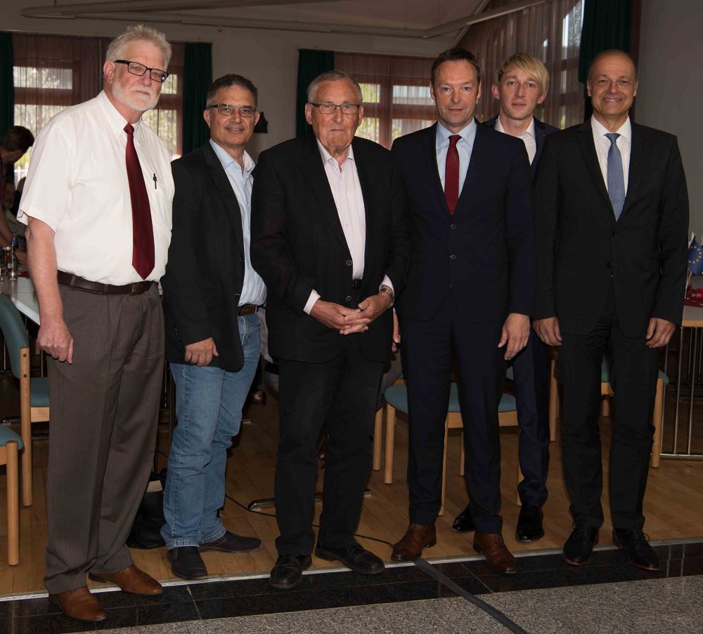v.l. SPD Ortsvereinsvorsitzender Helmut Wingender, Ortsbürgermeister von Plaidt Willi Anheier, Ehrenbürger von Kottenheim Toni Schüller, Staatssekretär Dr. Alexander Wilhelm,